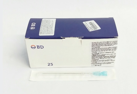 APRESENTAÇÃO: Embalagem individual de Agulha Raquidiana BD Whitacre, ponta lápis com introdutor.