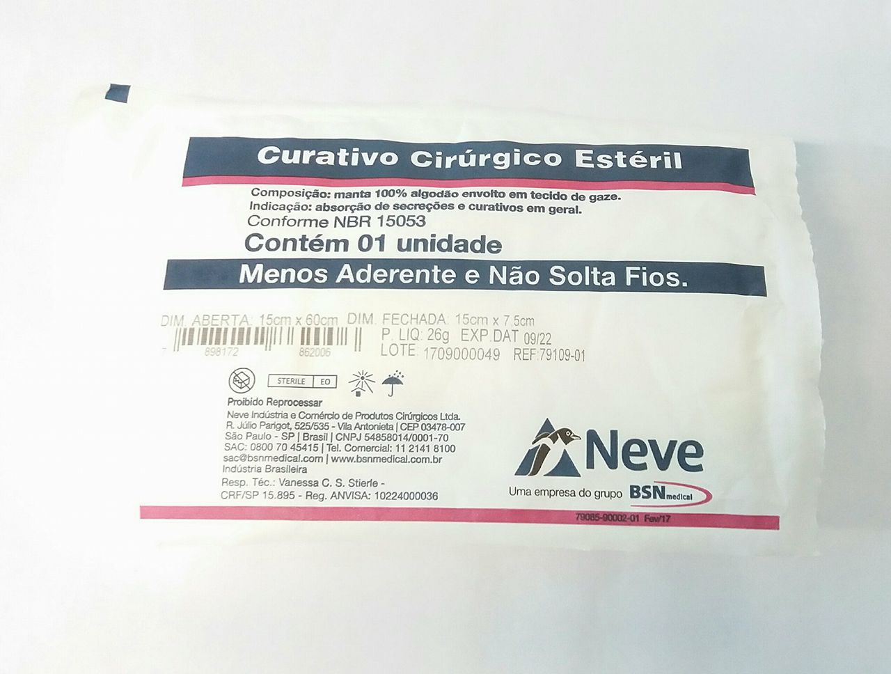 Medida fechada: 15 x 7,5 cm. Estéril.